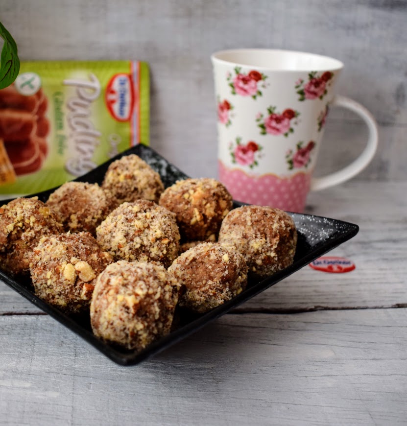 Puding bez glutena Dr. Oetker okus čokolada, 150 g lješnjaka Marjan voće , 100 g Schär Digestive keksi , 1 žlica kokos ulja ( ili maslaca)